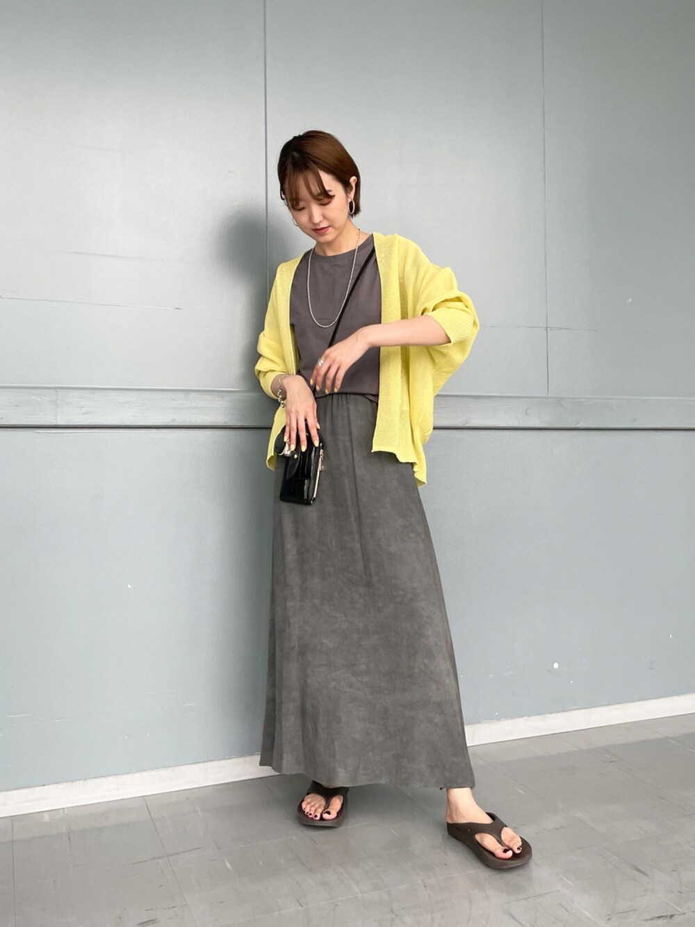 鮮やかなイエローが可愛いカーディガンコーデ。グレーとイエローの相性は抜群です!日除けや冷房対策にカーディガンを取り入れてみては。 【カーディガン】 綿100%ですが、麻の様な風合いのカーディガンです。麻より柔らかく、肌触りが良いので、素肌にも馴染みます。身幅はゆったりしているので、重ね着もしやすいです。 【トップス】 オーガニックコットン100%で肌触りが良く着心地抜群です。スッキリしたデザインなのでカーディガンのインナーに是非合わせてください。 【スカート】 こちらはセールでお買い求めやすくなっております!長さもあり、レーヨンなので、涼しくて落ち感があります。 ご覧頂きありがとうございます😊