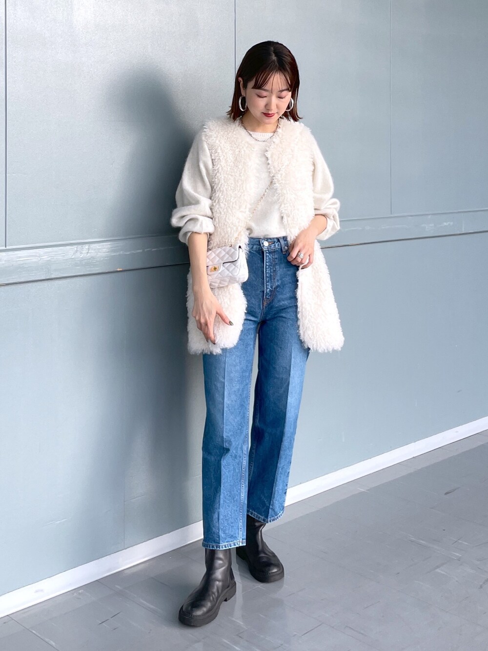 DouDou_serika(DouDouアミュプラザ博多店)のベスト「カーリーフェイクファーベスト」を使ったコーディネート
