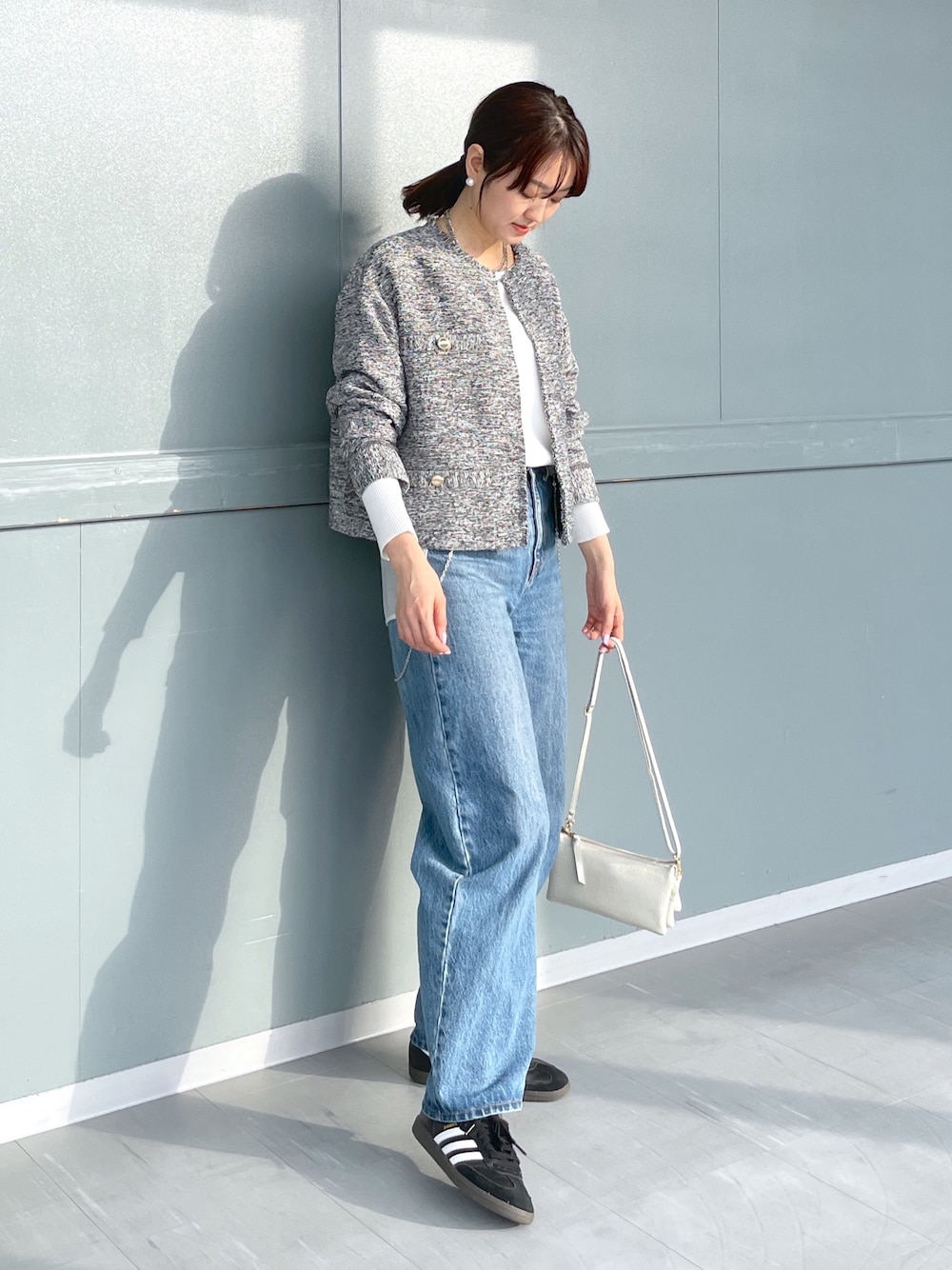 DouDou_serika(DouDouアミュプラザ博多店)のノーカラージャケット「ライトツイードジャケット」を使ったコーディネート