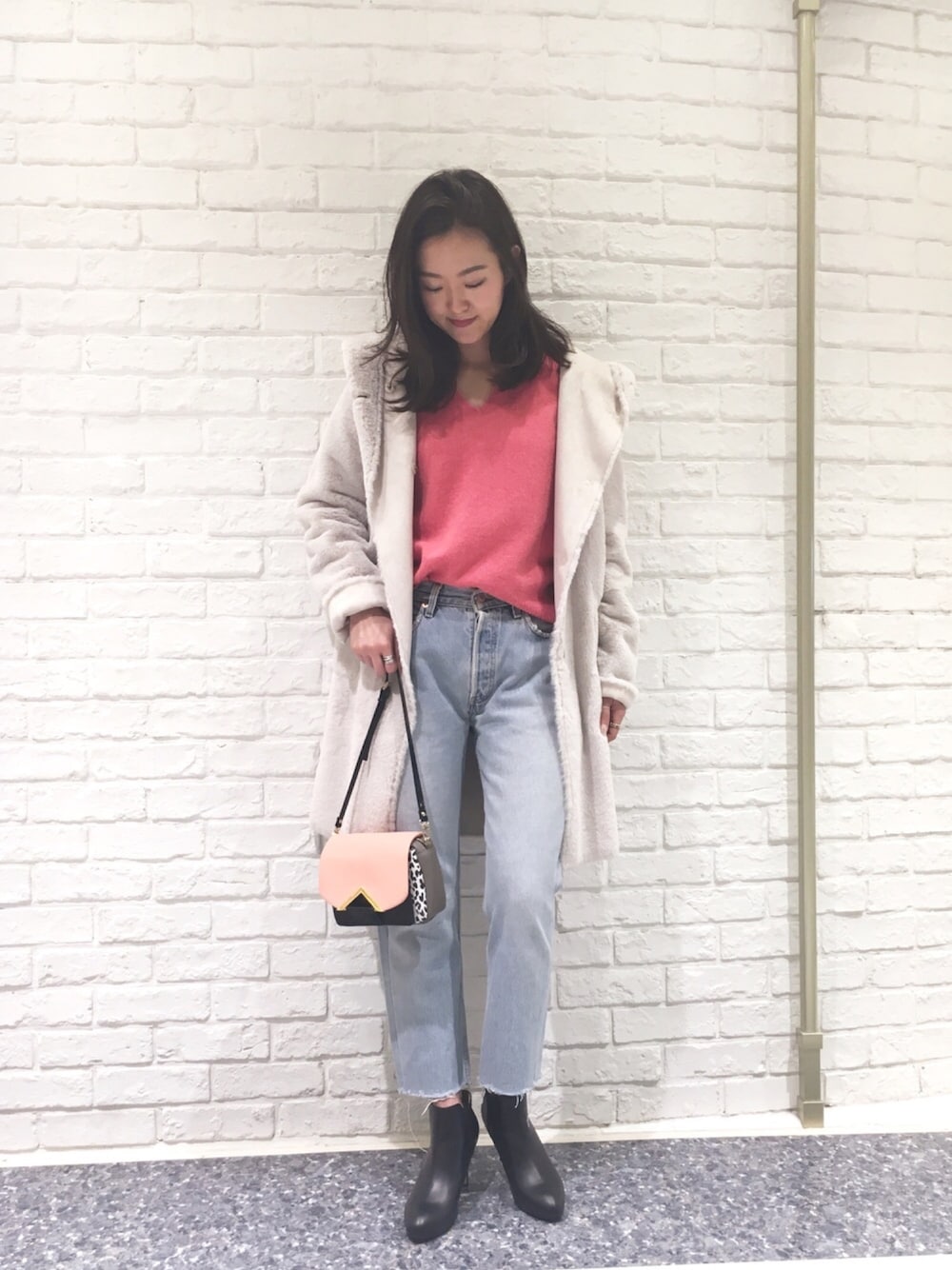 シンプルなコーディネートにピンクの差し色がポイントです💘💘