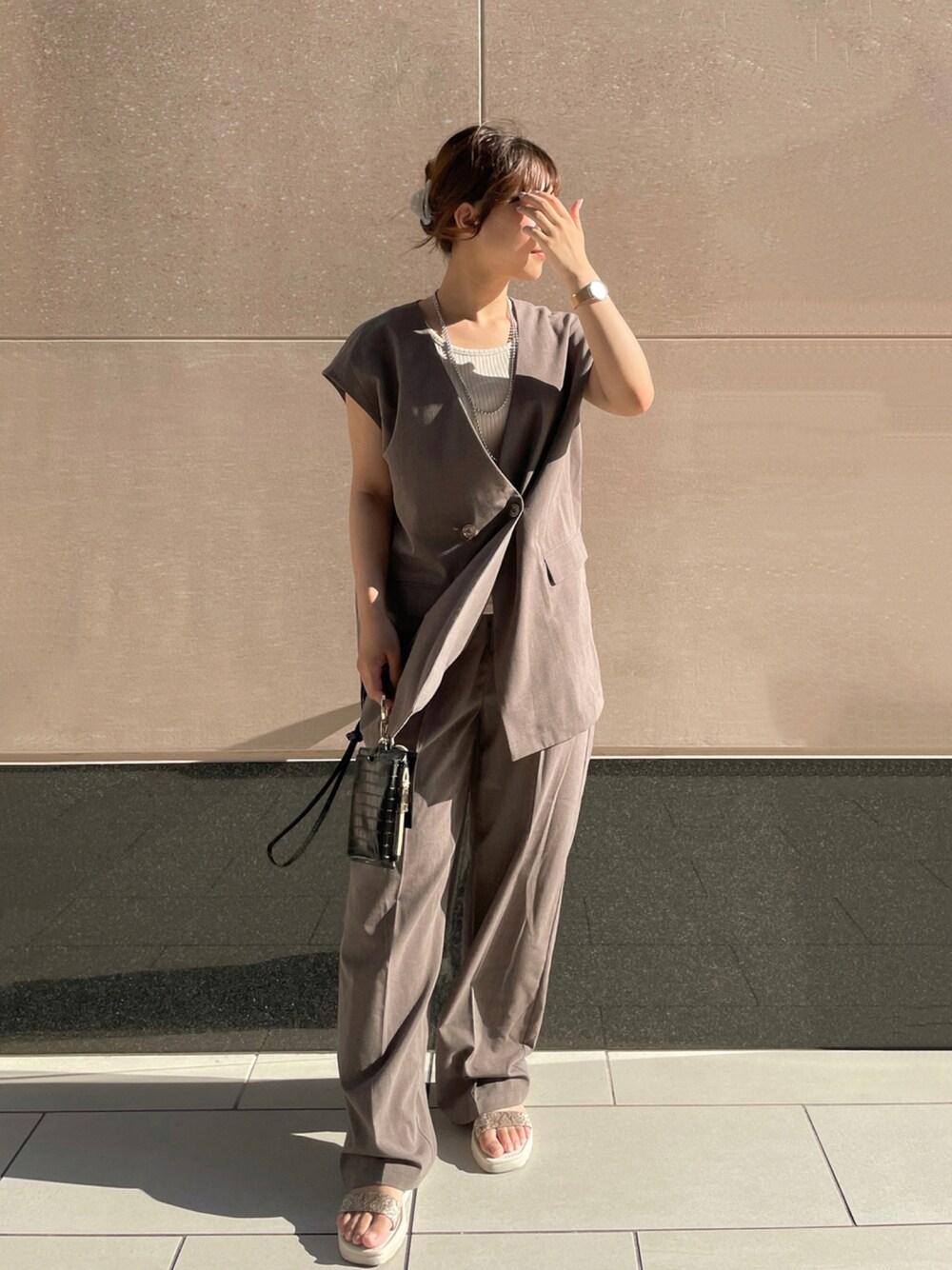 Tsugumiのセットアップ「【WEB限定】ベスト+パンツセットアップ」を使ったコーディネート
