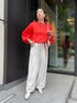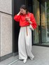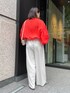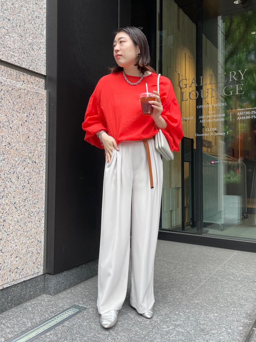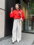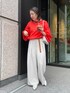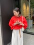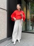 大人気のタックワイドパンツに ドロストシアーブラウスのオレンジを合わせました! 鮮やかトップスは難しそうに見えますが、落ち着いたグレー、ホワイト、濃いグレーなどでも 合わせやすく、 着ているだけで夏気分になります! ワンポイントにベルトのキャメルを使用し、アクセントつけてまとめました! 【トップス】Color:オレンジSize: Free 【ボトムス】Color: ライトグレーSize:Free