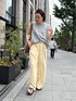 yu(DouDou)のスラックス「【累計販売数3万枚突破/23色4サイズ展開!】タックワイドパンツ」を使ったコーディネート
