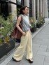 大人気のタックワイドパンツとスウェットタンクを合わせたコーディネート!! ふんわりと少しだけ入れるインスタイルがすきなので、 ベルトを見せるために片方側だけ ぐっとトップスに入れ込みメリハリをつけました! 淡い色味の合わせなので、バッグのブラウンとサングラスでコーディネートにアクセントをつけました! 【トップス】Color:グレー Size : Free 【パンツ】Color:イエロー Size :Free