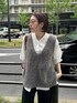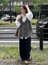 シャギーニット2WAY ベストにシャツを合わせたコーディネート! シャツがキレイ目な印象になるので、ボトムスはカジュアルなスウェットパンツにしました。 Vネック側でもカーディガン側を前にしてもかわいく切れるベストは 1つ持っておくだけで着回し力抜群です! 【ベスト】Color:チャコールグレー Size : Free【トップス】 Coming soon! 【ボトムス】 Color:ブラック Size:TM