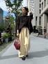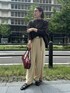 yu(DouDou)のスラックス「【累計販売数3万枚突破/22色4サイズ展開!】タックワイドパンツ」を使ったコーディネート