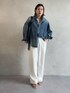 最近流行りのスウェットパンツ! 可愛く着こなしたいけど、、、パジャマになっちゃう (どうやって着ようか迷ってる方も多いと思います!! そんな方!カジュアルになりすぎないようなコーデを考えました♥ デニムシャツの デニムシャツはデコルテを見せて抜け感を出すようにボタンを開けて 裾は片方だけインしてスッキリ見え! カジュアルになりすぎないように抜け感を出すためにヒールをはきました! 【トップス】Color: ブルーその他1Size: Free 【ボトムス】Color:ホワイト Size:38