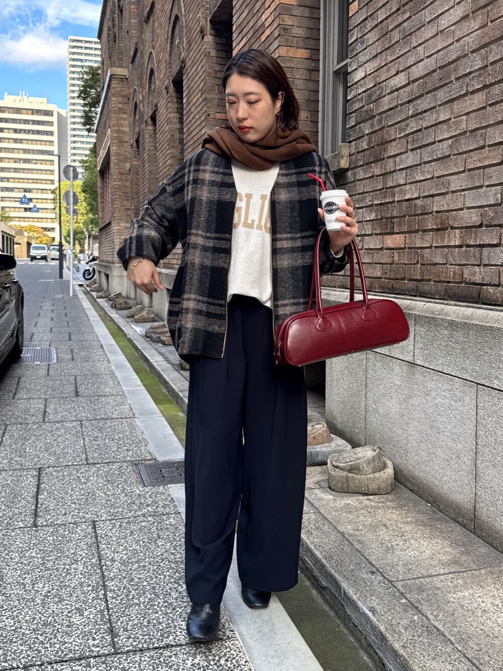 yu(DouDou)のスラックス「【累計販売数3万枚突破/23色4サイズ展開!】タックワイドパンツ」を使ったコーディネート