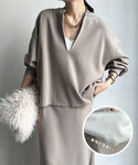 yu(DouDou)のTシャツ/カットソー「ボンバーヒート深Vプルオーバー」を使ったコーディネート