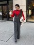 シアーニットのセットは赤茶色のお洒落色合わせ! 赤、茶色にあうブラックデニムでまとめました。 アウターはビッグシルエットなので中を細身にするとバランスが取れて好みのシルエットになりました! もちろん大きめのアウターなので中に着込めるのも嬉しいですよね! 【アウター】Color:ブラック Size : Free 【トップス】Color :レッドSize : Free 【ボトムス】 Color: ブラック Size:Free