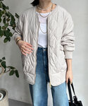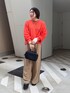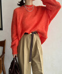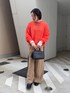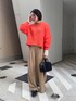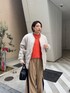 オレンジxベージュで カラーが映えますが、落ち着いた雰囲気になるように 意識してコーディネートを組みました!! キルティングMA1をエクリュにすることで同系色でまとめました! バックにスリットが入っているニットはアウターを脱いでもお洒落に♥ インナーにシアーTEEをいれて 袖からシアーを出してレイヤードスタイルを作るのがおすすめです! 【インナー】Color:オフホワイト Size : Free 【アウター】 Color:エクリュSize:Free 【トップス】Color:オレンジSize : Free 【パンツ】Color:ベージュ Size : Free