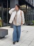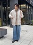 新発売したセンターラインカーブデニムに ケーブルタートルニットを合わせたコーディネート! カジュアルになりすぎないように インナーにバックボタンジョーゼットブラウス を レイヤードしました! 長めのニットでも裾から見えるほど長めに作られたジョーゼットブラウスなのでさりげなく見えるボタンがポイントです! 【アウター】Color:エクリュ Size: Free 【ニット】Color: ベージュSize : Free 【トップス】Color: ライトグレーSize:Free 【ボトムス】Color: ブルー Size:38