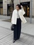 大人気のタックワイドパンツにデニムシャツの新色を合わせたコーディネート! インナーには裏起毛で暖かく 1枚でもインナーとしても着用できる分厚さなので安心! コートの中にデニムシャツを入れてレイヤードスタイルを楽しめます! カラーを入れたかったのでグリーンのコートを合わせました! 【インナー】Color: グレー Size : Free 【シャツ】Color:オフホワイト Size: Free 【アウター】Color:グリーン Size:Free 【パンツ】Color: ネイビー Size : TM