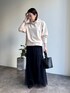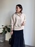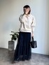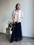 メッシュティアードスカートにフーディープルオーバーを合わせたコーディネート! 普段パンツコーデが多いのですが、女子っぽいコーディネートをしたい時にカジュアルなトップスと合わせてスカートで少し甘め要素をプラスするとMixコーデが簡単に作れます! 甘めのスカートを合わせているので、ドッキング部分を隠すようにしてバランスをとっています! スカートに折り込んでインするだけでまた違った着方もできるので着回し力抜群です よ⑤ 【トップス】Color: ベージュSize: Free 【ボトムス】Color: ネイビー Size : Free
