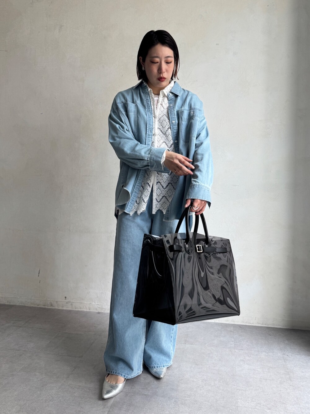 人気のレースブラウスにデニム✕デニムを合わせたコーディネート! デニムonデニムは色味を合わせるだけで簡単にまとまってくれて、簡単に上級者コーデができますよ! レースの甘さとデニムのカジュアルのmixコーデを意識して組みました! 【カバーオール】Color: スカイブルーSize:Free 【トップス】Color:ホワイト Size:Free 【ボトムス】Color: スカイブルーSize:38