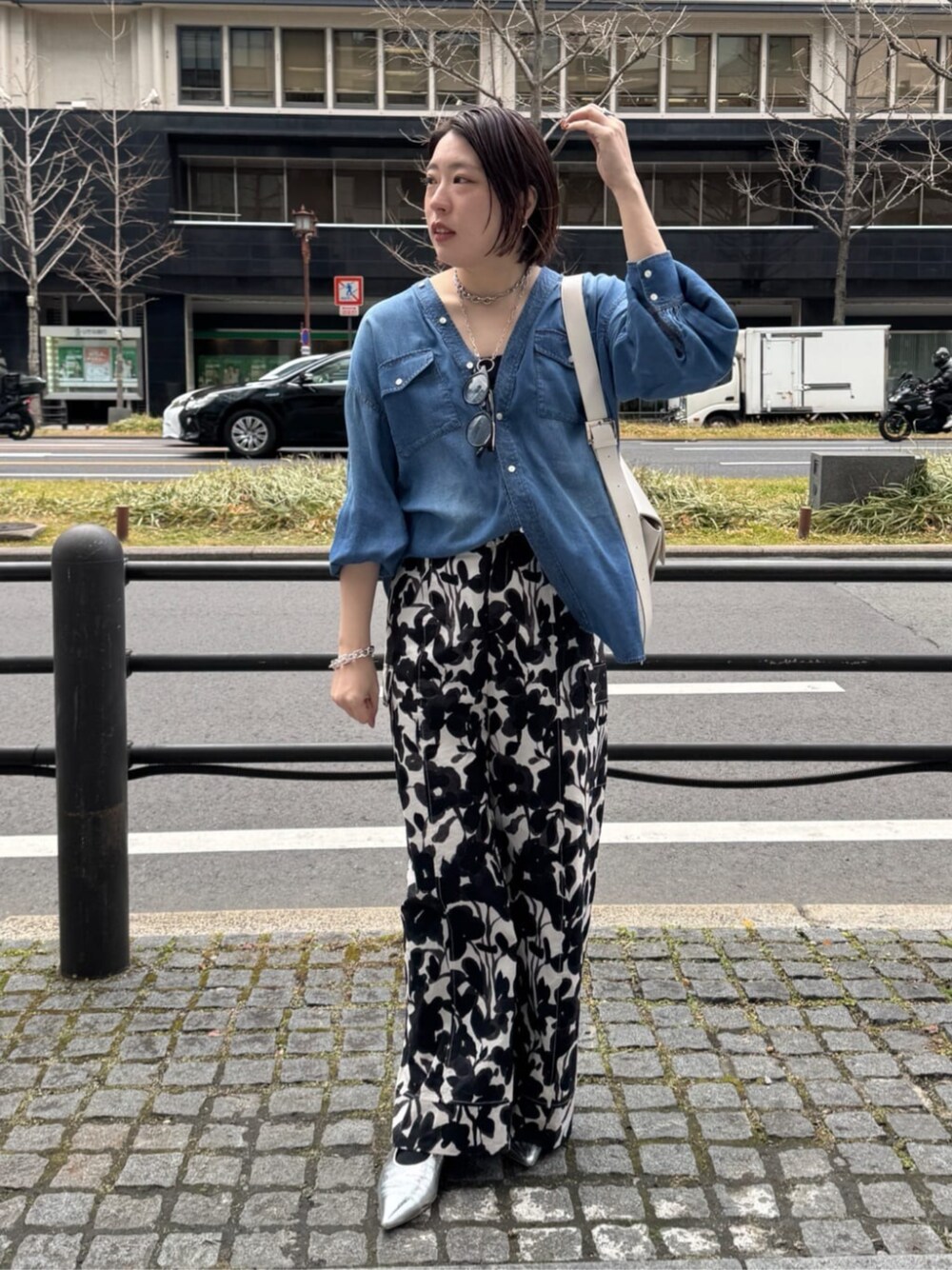 人気のデニムvvシャツと 柄パンツを合わせたコーディネート! 首元がVになっているので、 抜け感を出せて骨格ストレートに もってこいのトップスです! バックもVになっているので 360°お洒落見えしますよ! 【トップス】Color : ブルー Size : Free 【ボトムス】Color : アイボリー Size : Free