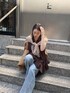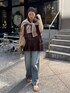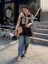 ゆるっとしたイージーデニムパンツに プリーツデザインが魅力のトップを合わせました! デニムのウエストは総ゴムで楽にはけますよ! プリーツのシルエットが可愛いブラウスは 着用するだけで、フェミニンさをプラスしてくれます! 【カーディガン】Color : ベージュその他1 Size:FREE 【トップス】Color : ブラウン Size:FREE 【ボトムス】Color : ブルー Size:38