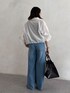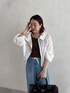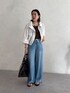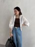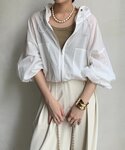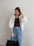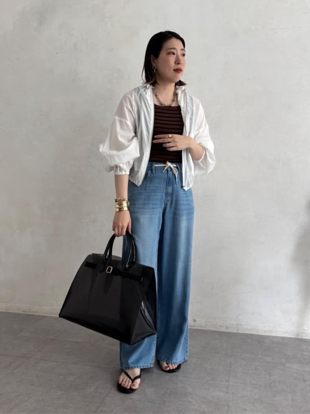 テロっと落ち感のある テンセル生地を使ったデニムに くしゅっとした襟付きのブルゾンを合わせました! シンプルなカラーの透け感があるブルゾンは 襟にドロストが付いているので ドロストを絞ると くしゅっとしたデザインが生まれます! ドロストをゆるめると襟にもなるので、 雰囲気に合わせて 変えることができますよ!