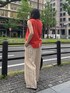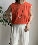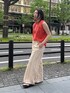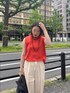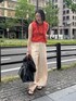 ストライプパンツから 色をとってオレンジのトップスを選びました! バランスを考えた時に どこかのワンポイントから 色を取って合わせると まとまったコーディネートが組めますよ!
