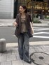 デニムに見えるスウェットパンツに 人気のアシメタックビスチェを合わせたコーディネート! 秋コーデとして 秋気分になるようにチェック柄の ダブルジャケットをチョイスしました! 大柄のチェックは カジュアルながらも大人の雰囲気を プラスしてくれます! イージーな履き心地のパンツは 楽に履けるのに、デニムに見えるので ラフになりすぎないスタイリングに仕上がります!