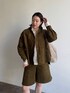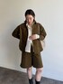 人気のスウェードシリーズに 新型登場! 少し硬めの生地感が高級感と上品さを出してくれます! セットで着るとマニッシュな印象に! 女性らしい甘め要素をプラスするために レースシャツをインナーにして 合わせました!