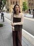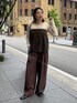 人気のタックワイドパンツに メランジが掛かった生地verが登場! 秋冬スタイルにマッチするパンツです! コットンシアーTEEに レースビスチェをレイヤードしたコーディネート! 秋を意識した色合いと素材で シーズンムードなスタイリングです!