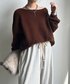 ワントーンコーデでまとめたブラウンコーデ! 肩幅が気になる私でも ワンショルにできるぐらいの首の空き具合なのが嬉しいニット! ニットとタックワイドパンツを合わせた シンプルコーデなのでベルトでアクセントをつけました!