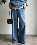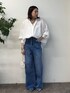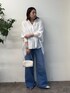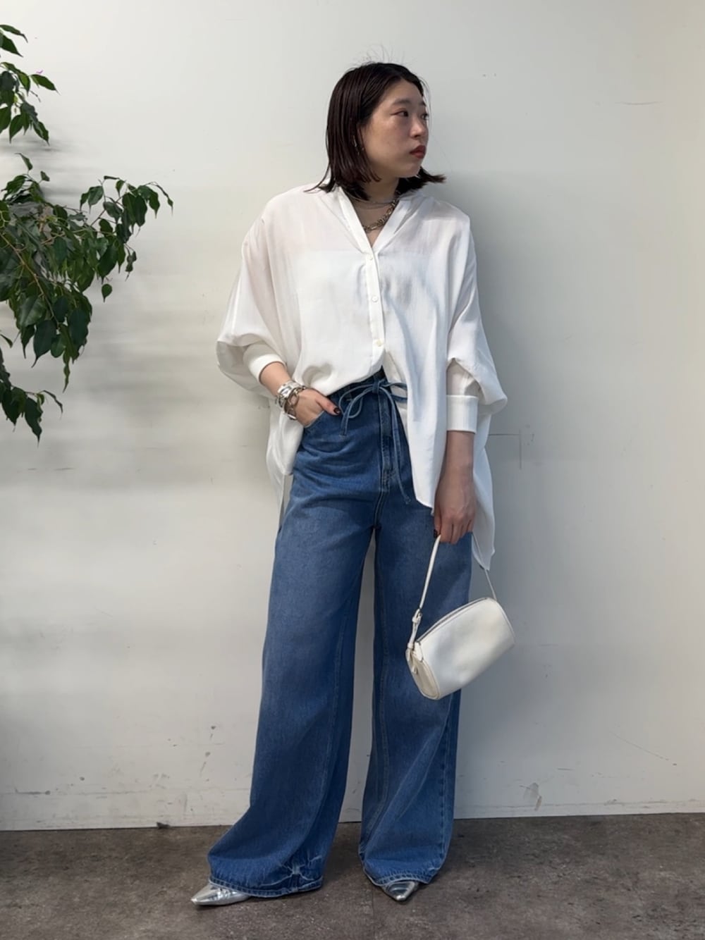 ドルマンシルエットになっている ブラウスにデニムパンツを合わせたコーディネート! デニムは同素材のベルトが付いているので インしても見えて可愛いです!! ブラウスは袖リブになっているので、 メリハリもついて簡単に抜け感をだせますよ!