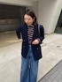 毎年人気のメッシュダブルジャケットに ボーダーのカットソーをインナーに着用したコーディネート! ボーダーとデニムだけだとカジュアルですが、ボートネックだから さりげない肌見せがカジュアルになりすぎません! メッシュ素材のジャケットも抜け感があるので綺麗め要素も取り入れれます!