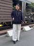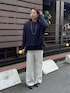 マルチに使えるフリルトップスをレイヤードしたコーディネート! ゆるっとしたトップスのインナーにして、裾からちらっとフリルを見せるだけでシンプルなコーデもアクセントをつけることができます! チノパンの 後ろ側にフックがついて調整できるのも嬉しいです!