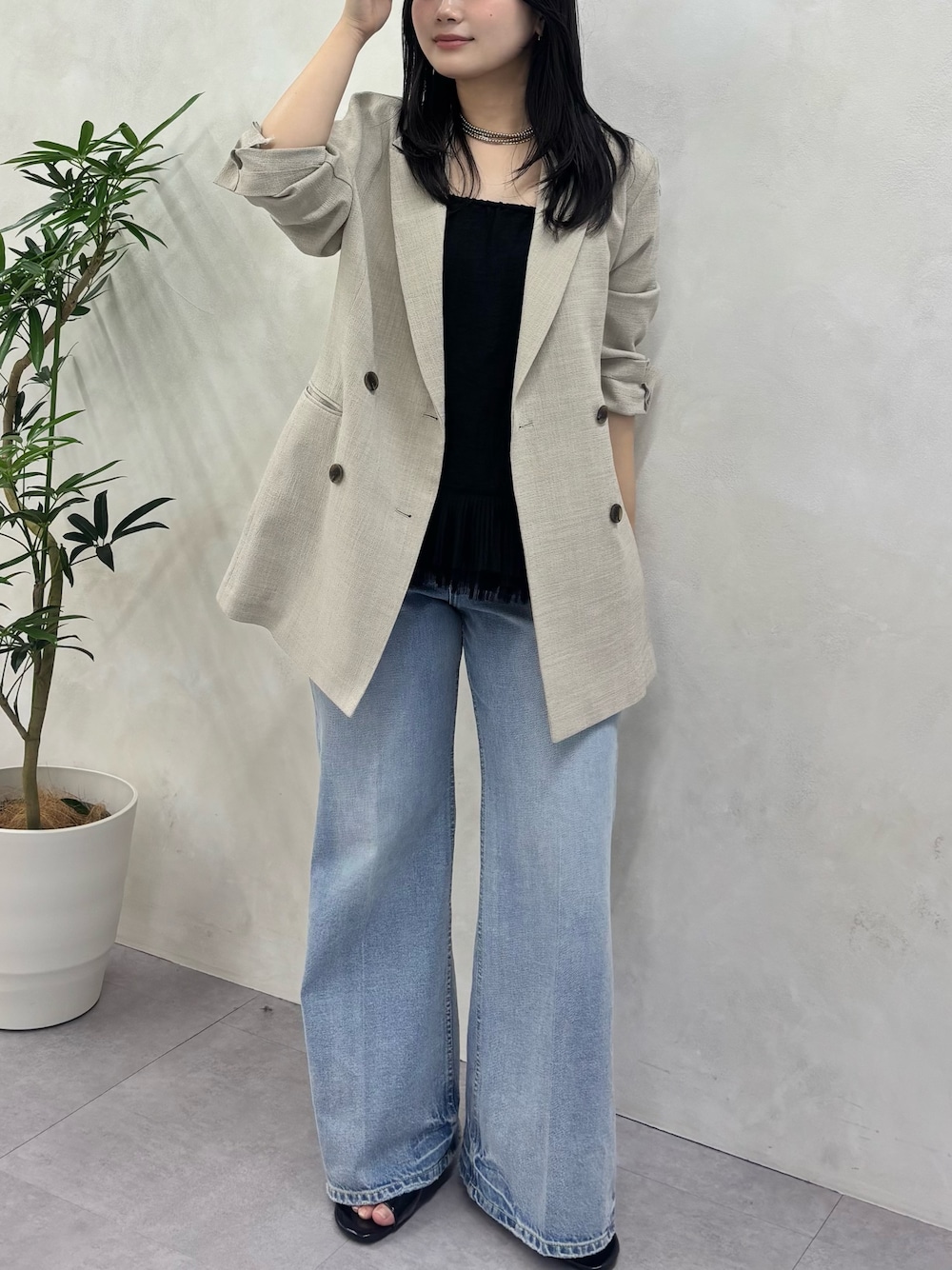 doudouyuna(DouDou クリスタ長堀店)のテーラードジャケット「【インフルエンサー REI企画】リネンライクスラブジャケット」を使ったコーディネート