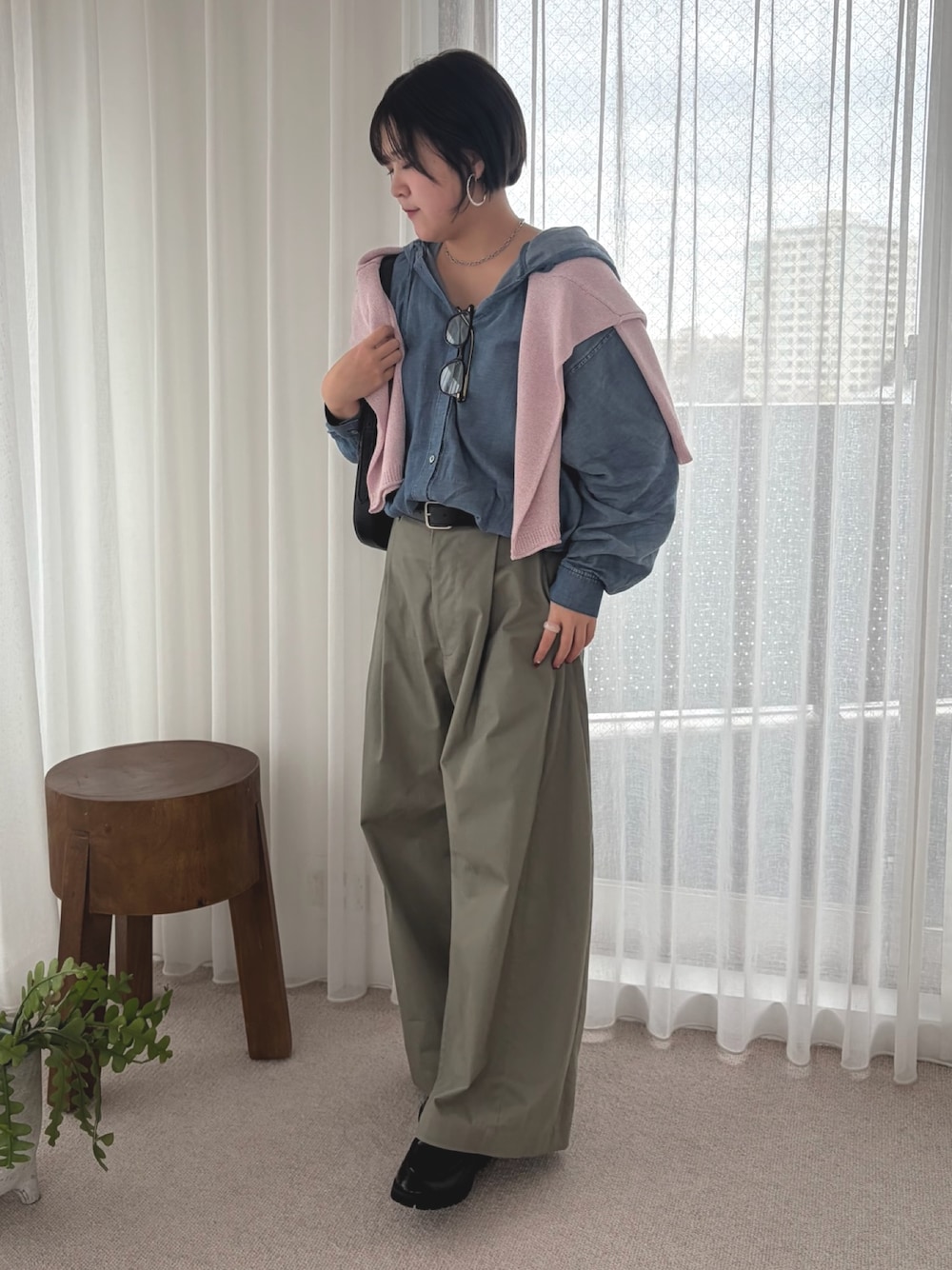 春色で気分も上がる大人カジュアルコーデ 【shirt】 着用サイズ 38 カラー サックス ・丈感 袖が手のひらに少しかかるくらい、裾はお尻が隠れるくらいの丈感です。 ・着心地 サラッとしたシアー生地で、ゆるっと着られるサイズ感です。 ・おすすめポイント 大人気のソフトデニムにフード付きが登場!着るだけでこなれ感が出るのが嬉しい😆 【Pants】 着用サイズ 38 カラー カーキ ・丈感 158cmの私が着用すると、くるぶしが隠れるくらいの丈感です。 ・着心地 サラッとしたハリのある生地感で、バッグゴム&カーブシルエットなのでリラックスして着用いただけます。 ・おすすめポイント ハイウエストで脚長効果抜群です✨ インスタも毎日更新中✨着こなし術や綺麗めカジュアルコーデを発信しています♪ぜひ、のぞきに来ていただけたら嬉しいです☺️ @do_koharu.2003