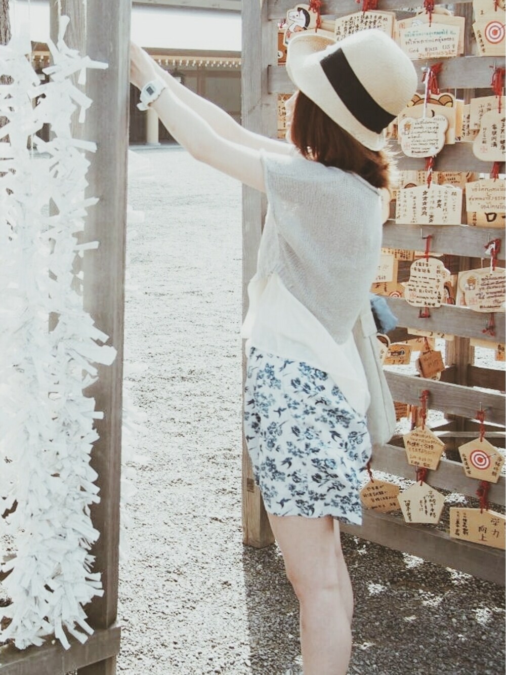 すっかり夏なコーデ。 あまりにも暑かったので麦わら帽子を出してきました。 6月いっぱいで今の仕事を辞めて7月から再スタートをきるつもり。 実は就活中です。 受かりますように!と願いを込めて、おみくじを結んでおります~