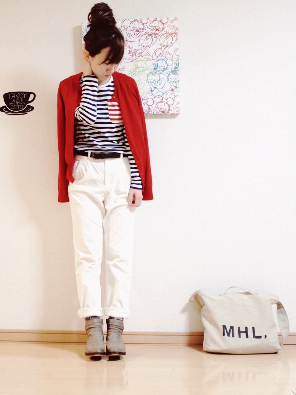 赤い服はカーディガンしかもっていないのですが、ぱきっとした赤でこれはお気に入りの1枚です。 おだんごはウイッグです。 ☆☆☆☆☆ ZOZOTOWN haco. ロジーズ タック入りすっきりコーデュロイパンツ 商品ページに掲載されました☆
