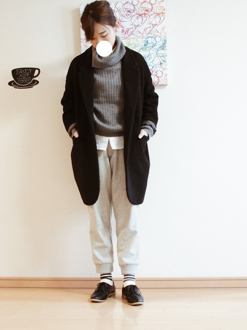 シャツ:無印良品 タートル:GU ソックス:靴下屋 オールグレー その2 おなじグレーでも濃いのと薄いので。 このパンツ、なかなかコーディネイトが難しい!