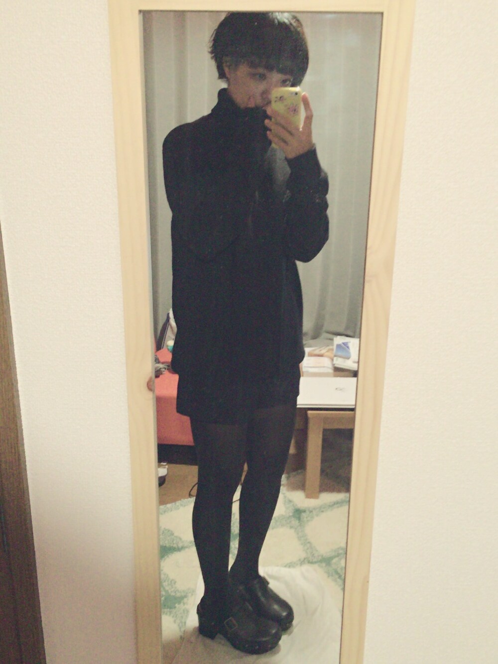 黒コーデ写らないんですけど。みんなどうやって撮ってんさ??笑 いい感じの写真アプリとか取ればいいんかいな? まあいいか、 兎に角、黒タートル、ショーパン、サボです。サボめちゃ好きです。可愛いのに履きやすい。夢の履き物です。 黒タートル連続になってしまって残念だが、せっかくだから載せる。