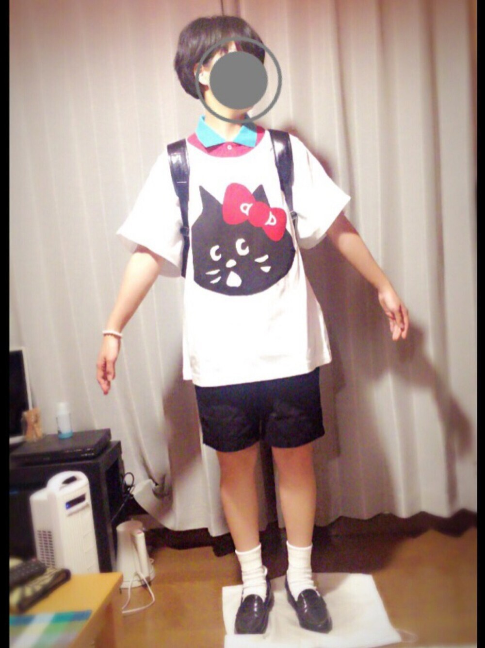 にゃーーわーー こんばんは。にゃーとキティちゃんコラボビッグT。かわいいですね。かわいいに決まってますね。 短パンと白ソックスとローファー。そうです。小学生スタイル。自分の将来が心配です。 そんなことどうでもいいです!! 襟と本体のバイカラーが大好物なので、白Tと合わせられて満足満足満( ^ω^ )