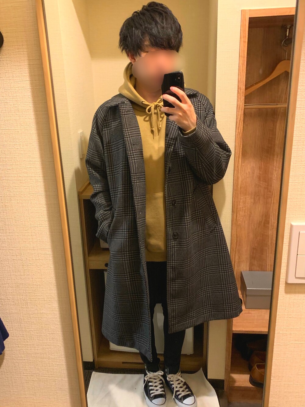 こんばんは。 見てくださりありがとうございます😊 昨日に続きコートを使ったコーデ🧥💫 ベージュのパーカーと合わせてカジュアルな雰囲気にしてみました🕺✨