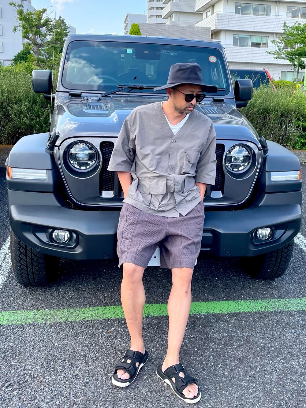 エスニックなジャガードのショーツはセットアップで五分袖のキーネックトップスも購入。今季一番のお気に入り。
