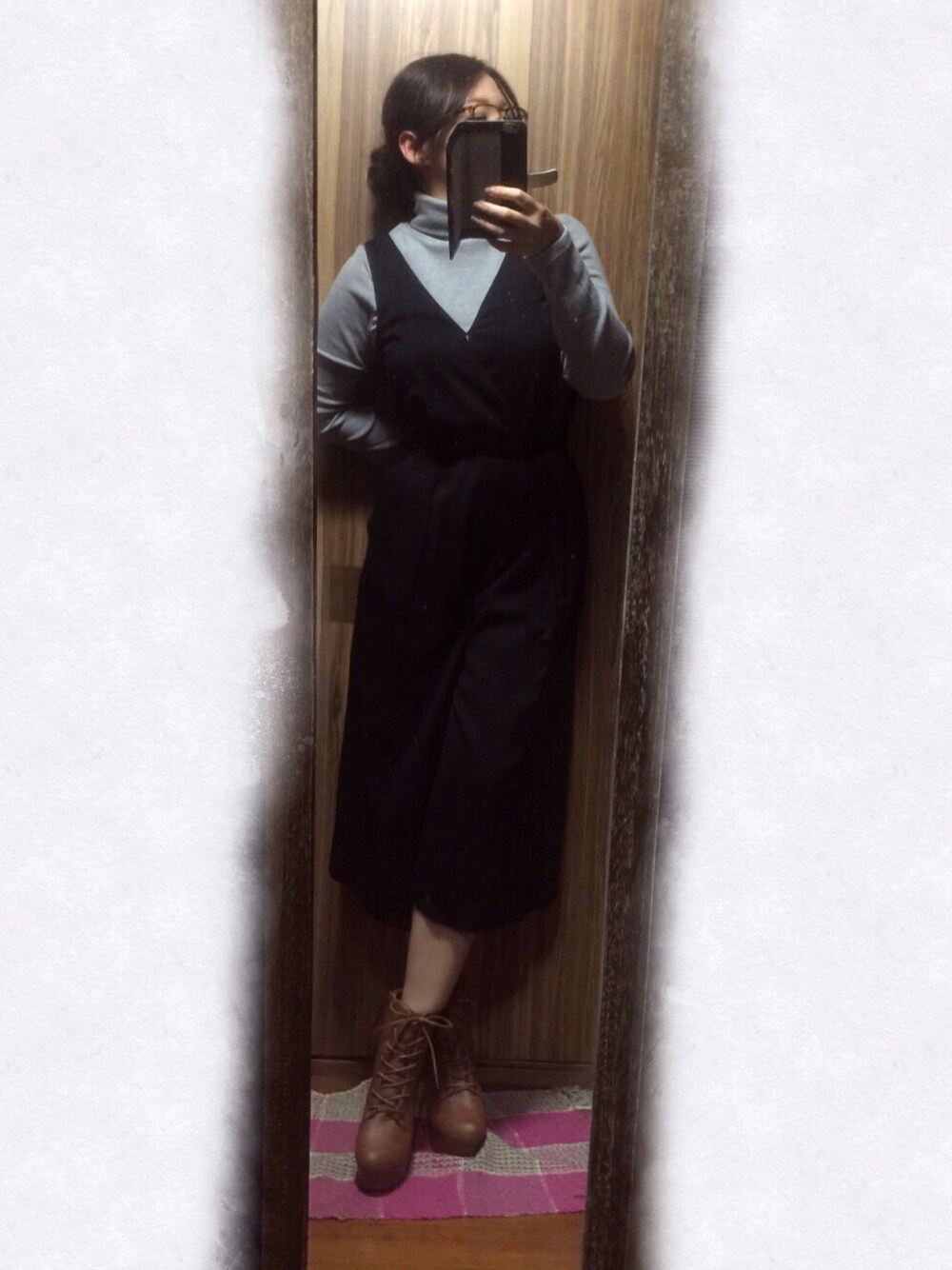 ガウチョのブラックサロペット。 図書館に居そうな感じに。