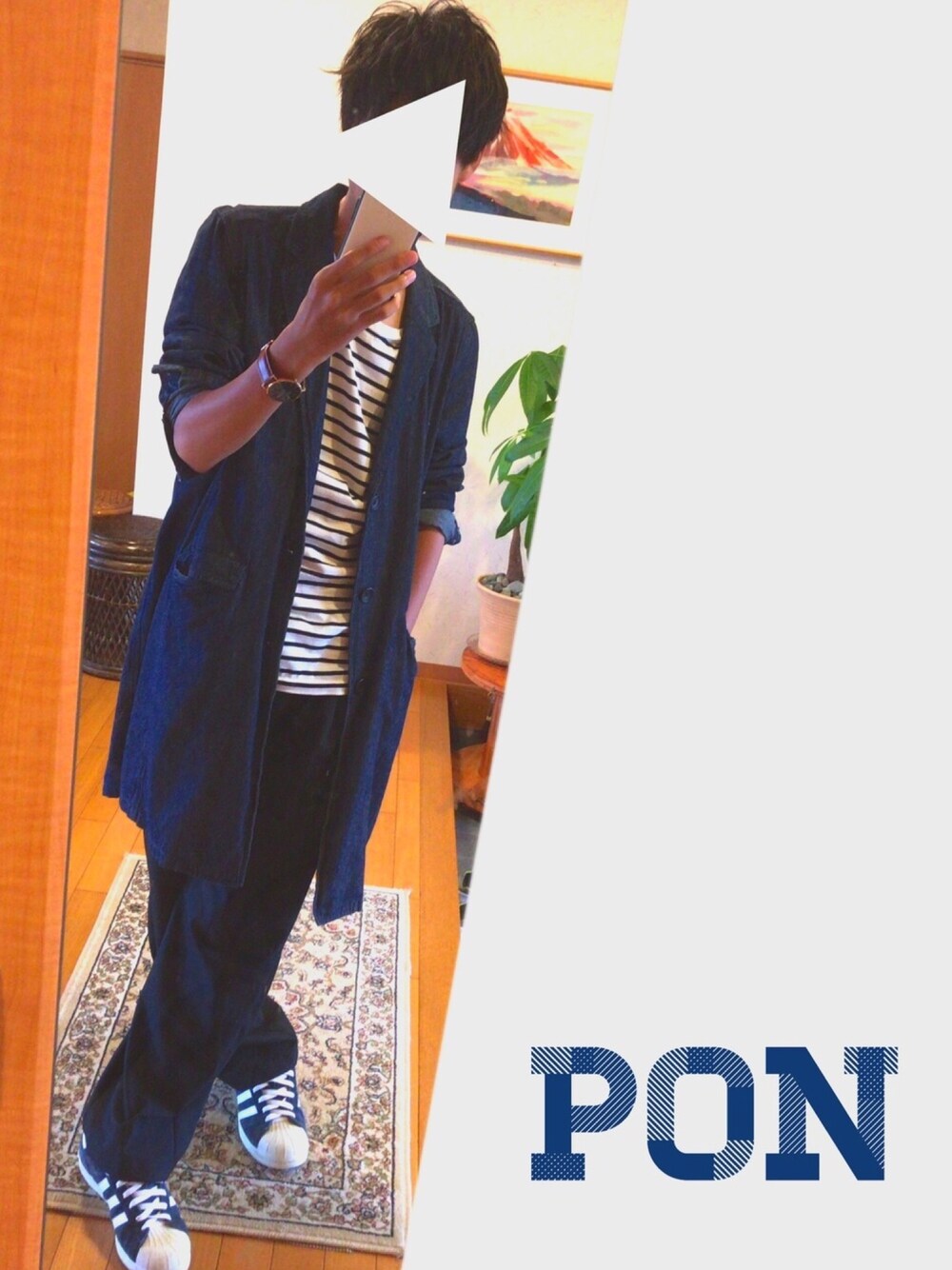 PONちゃん*のアナログ腕時計「Daniel Wellington ダニエル・ウェリントン St Mawes BLACK MODEL 40MM アナログクォーツ レザーバンド / DW00100124」を使ったコーディネート
