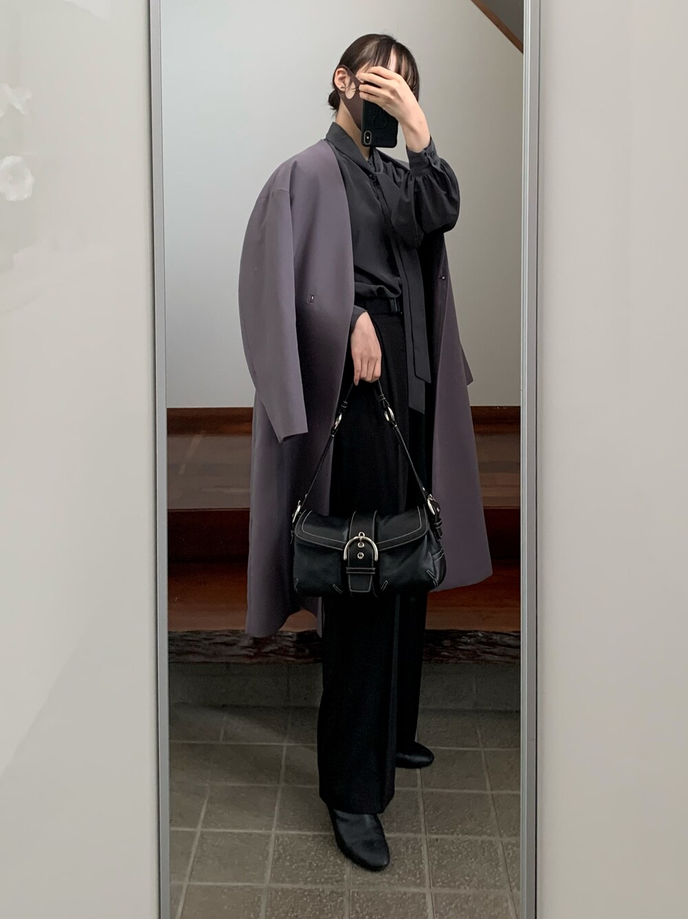 このパープルグレーのコートが可愛いのよ。