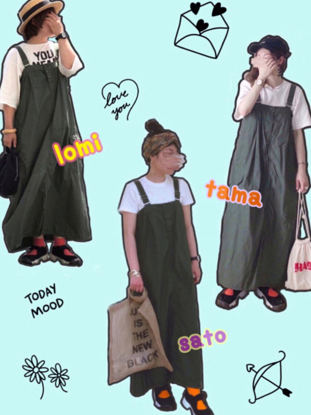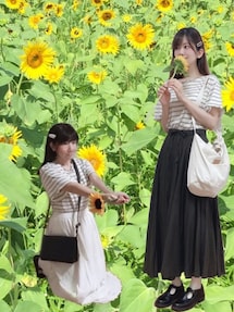 沢山のコーデの中からご覧頂きありがとうございます◟̆◞̆* 今日はWEARを初めた時から 仲良くさせてもらってる たまちゃんとろみちゃんと 夢のリンクこーでが叶いました💚 何気に後追いはあるけどリンクは初で どう合わせるか話し合ったりしてる時間も楽しくて2人との距離もぐーっと縮まって 本当にありがとう☺️💓 今回は皆、しまむらのジャンスカを買ったのがきっかけでコーデを考えました◟̆◞̆* リンクポイント 𖤐白T 𖤐ジャンスカ 𖤐靴下 𖤐エアリフト あとは、それぞれの個性を出しました⑅◡̈* 2人とも、センス抜群のお洒落さんたちなので是非2人の所にも見に行って下さい☺︎ 長文ですが見て頂きありがとうございます◟̆◞̆*✦ฺ いつも、♡+📁も とても嬉しいです🥺💖 ありがとうございます◟̆◞̆*✨ 毎日ログインできず、訪問できずすみません🙇♀️ いける時は訪問させて頂きます😭🙏 Tシャツ⁑UNIQLO