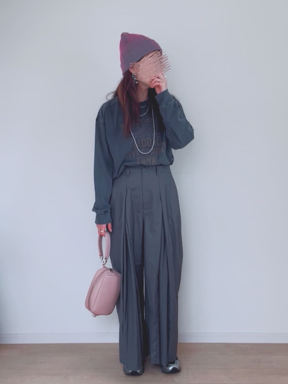 ワントーンかと思いきや トップスはネイビー☺︎ 暑い日もあるけど、ロンTで丁度良い日もあって嬉しい♪♪ ご訪問ありがとうございました𖤐