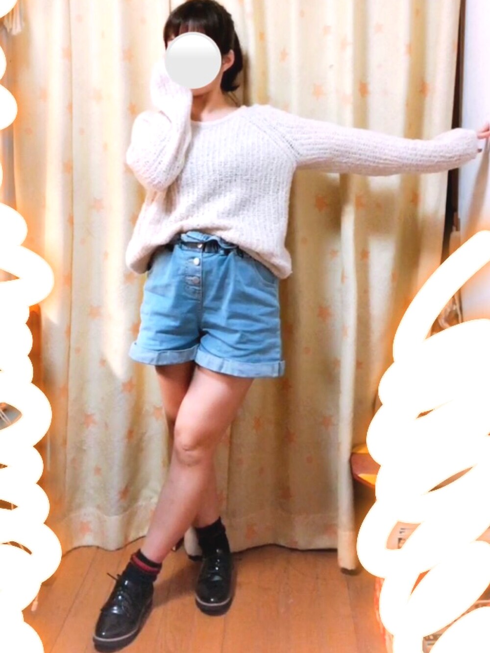 ☆本日のコーデ☆ 今日はモコモココーデです‼ モコモコ生地のニットで 女の子らしさを出しました! あえてショートパンツにして 甘すぎずにしてみました! 靴下とトップスをモコモコに。 私結構靴下とトップスの 色や生地感を統一させるのが好きですし すごく合わせやすいです‼ カジュアルにしたいけど ちょっと女の子らしさを出したい というのであれば トップスをニットでも 少しゆるっときれるようなのが 可愛いかなと思います♪