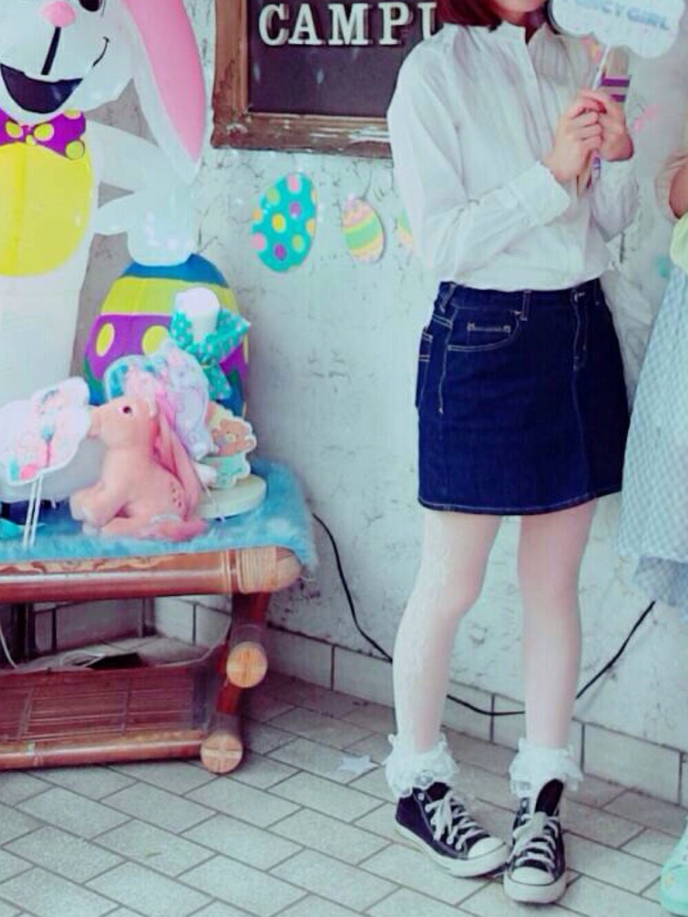白🐇 靴はusedのオールスター、かばんはKatieのフリルトート