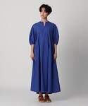 鮮やかなブルーが目を惹くワンピースは亀恭子さんとのコラボレーションのアイテムです。 今年らしいボリュームスリーブで、ウエストにゆとりのあるデザインなのでストレスフリーでお召しいただけます。