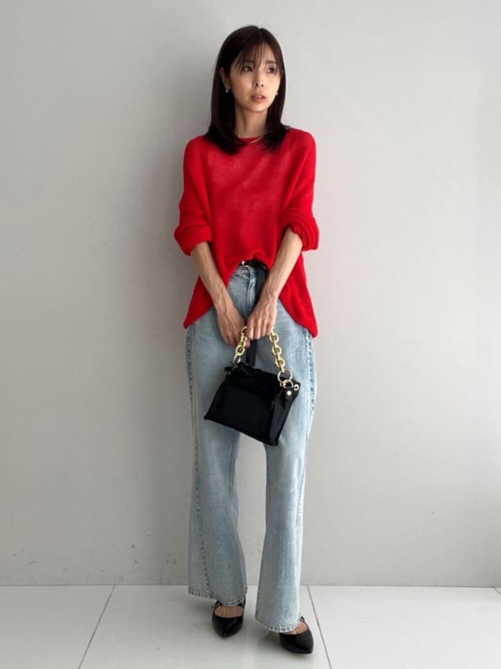 【STYLING POINT】 透けニットが夏から秋まで活躍! 映える真っ赤がシンプルに決まります! 【サイズ感】 トップス:166cm Mサイズで細見えするルーズなサイズ感。 デニム:166cm Mサイズ。少しルーズな着心地なのでピッタリ履きたい方はsサイズでも! 【着心地】 トップス: シアー素材で夏でも着られます。 長袖なので冷房対策にも。 デニム:脚が細く長く見えます!セールでおトク!残りわずかです!