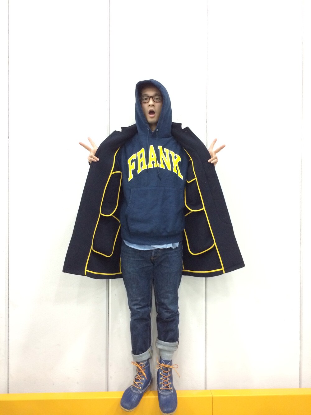 メガネはアンジェラ アキさんを意識した。 パーカーはFRANK ブーツはL.L.Bean×BAEMS 気温が下がったから冬の格好になってしもた。