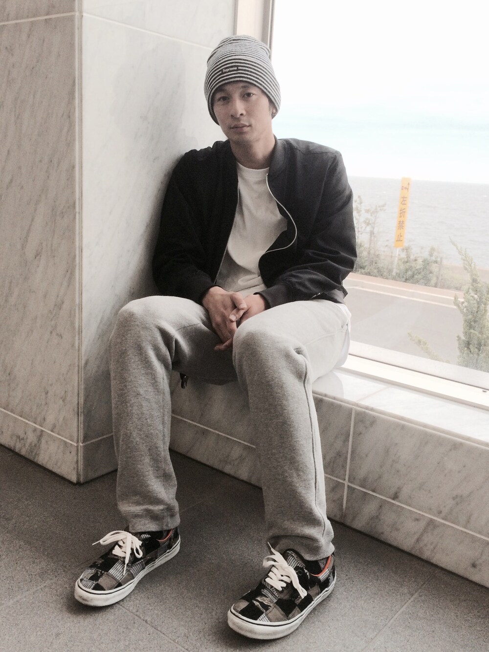 楽チンな格好。 やっぱりニットキャップが好き。